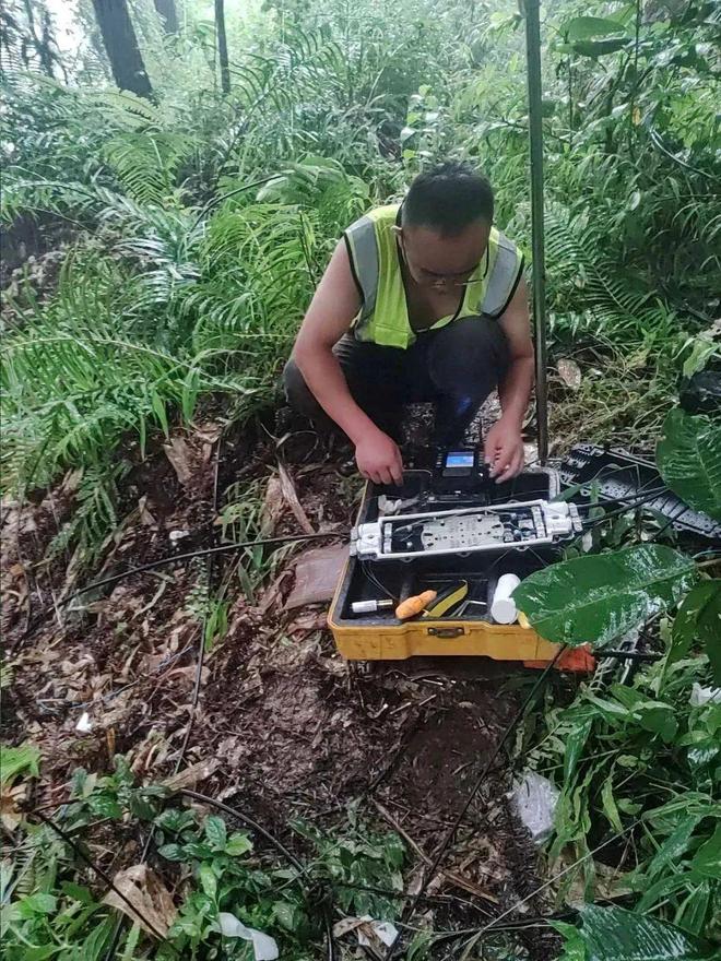 重庆南岸区峡口镇由于路面塌方导致网络中断,且断点在路面地下井内,由于暴雨刚过,井内积水严重且堆积大量淤泥,情况十分复杂,抢险工程师果断穿上防水服,下到井中,手持电筒在空间狭小、光线昏暗的井内仔细排查故障点,经过一个小时的紧张作业,网络恢复畅通。
